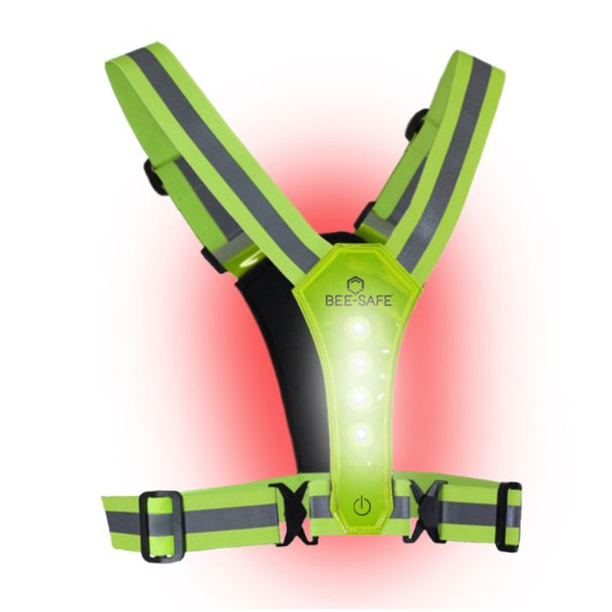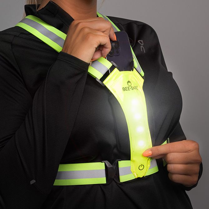 Word tijdig gezien en val extra op in het donker met het BEE SAFE LED Harness USB. Dit innovatieve en comfortabele harnas is speciaal ontworpen voor hardlopers, wandelaars en fietsers die veiligheid en gemak willen combineren. Neem je smartphone gemakkelijk mee in het geïntegreerde telefoonvak.