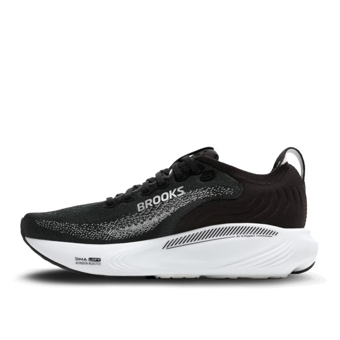 Het bovenwerk bestaat uit ademend engineered mesh / AirMesh, dat zorgt voor ventilatie en je voeten koel houdt, ook bij intensief gebruik. Tegelijkertijd omsluit het het voetoppervlak op een comfortabele, ondersteunde manier. Brooks maakte daarnaast gebruik van gerecyclede materialen, zodat duurzaamheid en comfort gecombineerd worden. De pasvorm is iets ruimer in de voorvoet vergeleken met voorgaande versies, wat extra comfort geeft, zeker bij bredere of wat volumineuzere voeten.