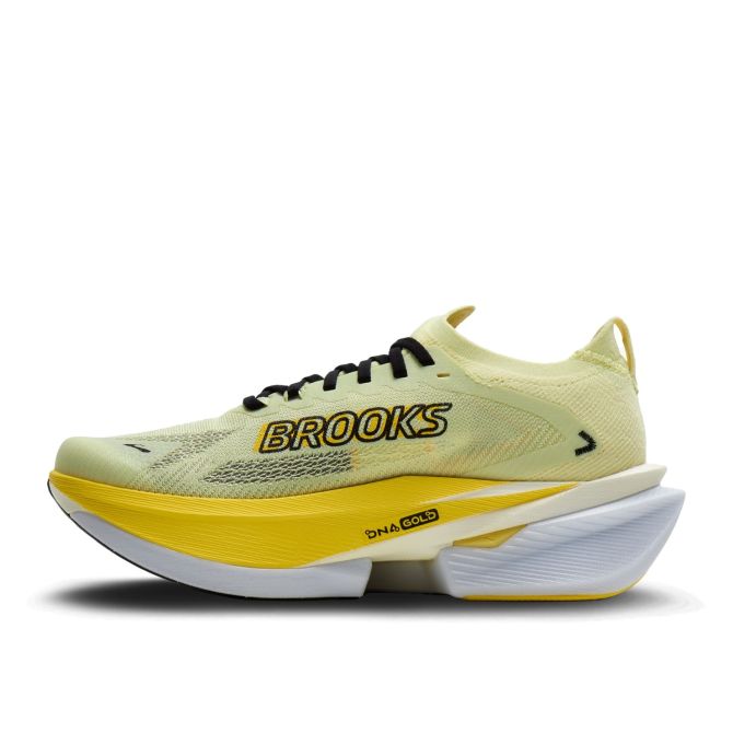 De dikkere middenzool bestaat uit het nieuwe DNA GOLD 100% Peba foam en het bekende DNA Flash v2-foam van Brooks met daartussen een stevige pebax SpeedVault plaat. Deze elementen, samen met de agressieve rockervorm van de zool (Rapid Roll-technologie) maken het kinderspel om lang op hoger tempo te lopen. Een uitsparing in het foam draagt bij aan het zo licht mogelijk maken van het geheel.