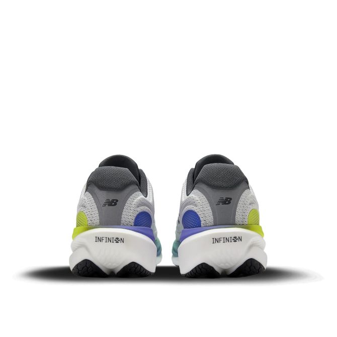 Deze versie introduceert de nieuwe Infinion-foam middenzooltechnologie, die de bekende Fresh Foam X vervangt. Deze geavanceerde foam is lichter, zachter en veerkrachtiger, wat zorgt voor een comfortabele demping én een levendige respons bij iedere stap. De substantial stack-hoogte (ongeveer 40 mm bij de hiel en 34 mm bij de voorvoet) biedt diepe demping zonder een “mushy” gevoel, met een soepele overgang van landing naar afzet.