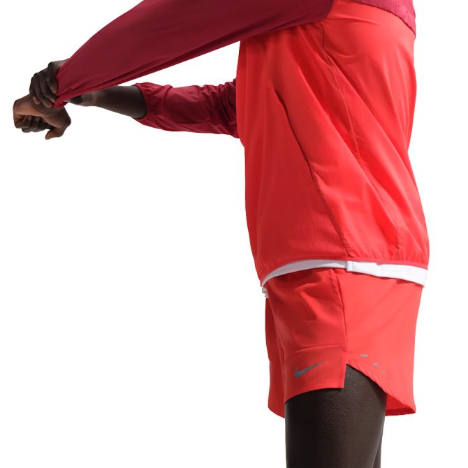 Ga tot het uiterste in deze ventilerende Stride shorts. Ze zijn gemaakt van licht, zweetafvoerend geweven materiaal en hebben een ondersteunend binnenbroekje. Bovendien past een telefoon in een achterzak met rits, zodat je handsfree kunt blijven.