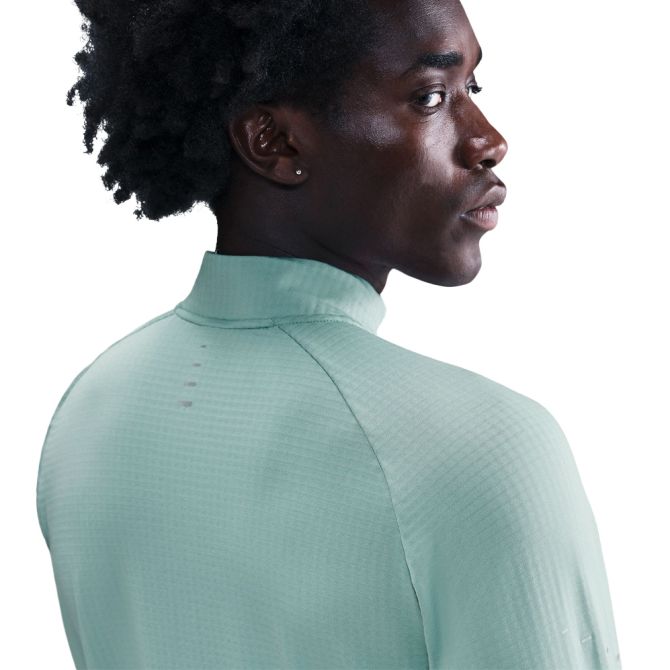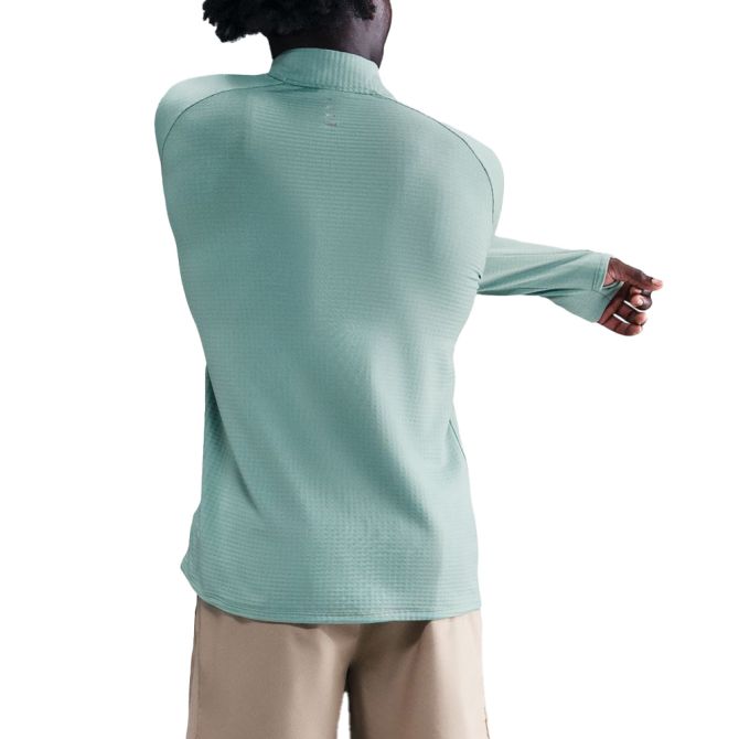 Laat slecht weer je tempo niet in de weg zitten. Deze winterse hardlooptop is gemaakt met warmteregulerende technologie en een waterafstotende afwerking om je warm en comfortabel te houden, kilometer na kilometer. Raglanmouwen zorgen voor minder wrijving onder de armen en de wafelachtige binnenkant voelt extra zacht en licht aan.