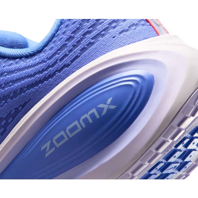 De middenzool van de Vomero Plus bestaat uit een dikke laag ZoomX foam, het meest comfortabele foam van Nike dat we in veel modellen terugzien. De vorm van de zool heeft een sterke rocker-geometrie, wat betekent dat je tijdens het rennen meer naar voren rolt en een natuurlijke voorwaartse flow in de hand werkt. De Vomero Plus is in de categorie maximaal dempende hardloopschoenen met zacht PEBA foam opvallend in stabiliteit, te danken aan de brede basis van de zool.