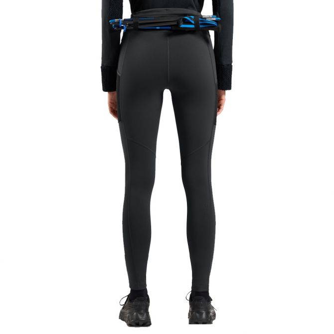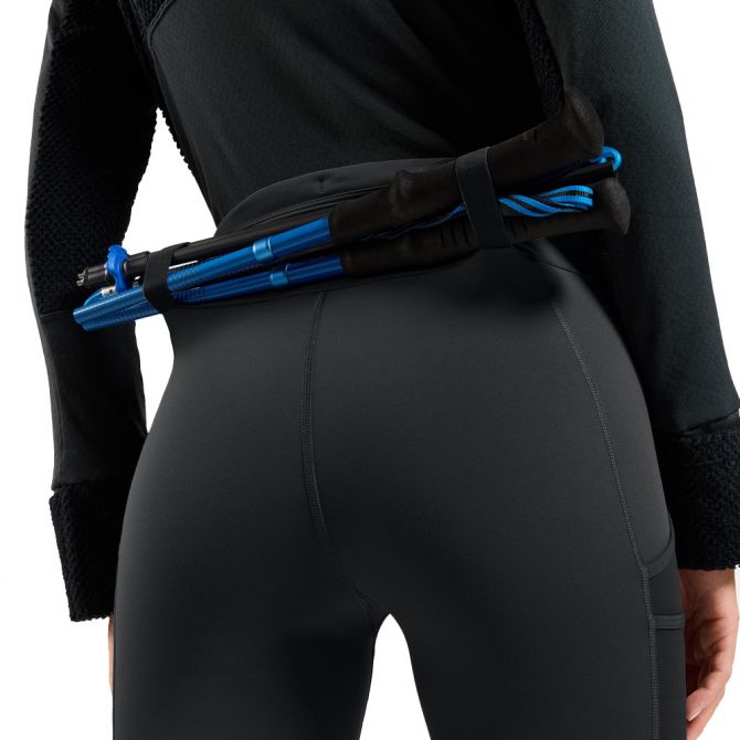 Deze lange tight heeft diverse zakken, zodat je je handen vrijhoudt op de trails. Dit model heeft mesh opbergruimte met stretch geïntegreerd in de tailleband, bandjes voor je stokken, twee zijzakken voor gels en repen, en een ritszak voor sleutels en contant geld. De tight is gemaakt van stretchy, deels gerecycled polyester met een waterbestendige C0-coating. De binnenkant is geborsteld voor extra comfort. Met reflecterende details en een trekkoord in de tailleband om de ideale pasvorm te creëren. Gemaakt voor uitdagende runs in de bergen.
