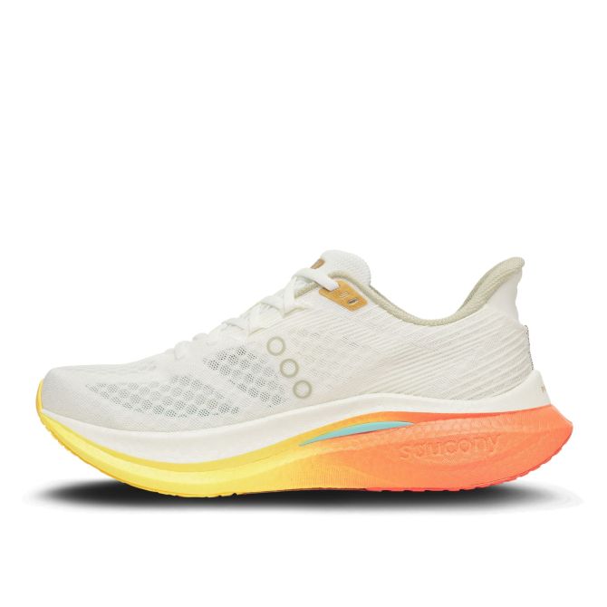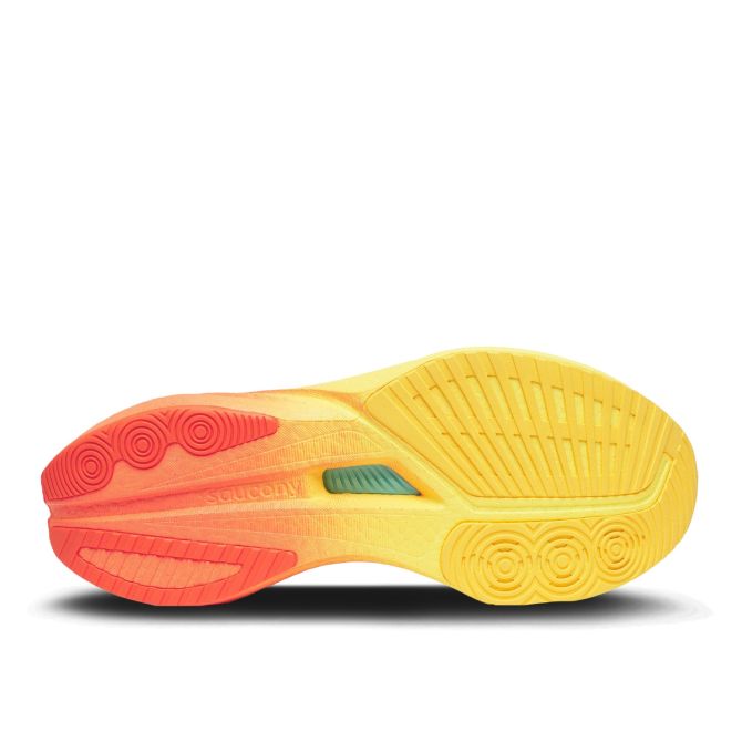 De middenzool is opgebouwd uit responsief PWRRUN PB-foam dat effectief samenwerkt met een stevige nylon plaat in de kern voor meer snelheid. De vorm is ontworpen volgens Saucony’s SPEEDROLL-Technologie, dat een snelle afwikkeling richting de voorvoet stimuleert. Voor extra comfort heeft de schoen een Super Responsive Sockliner: Een dikke inlegzool voor een extra laag demping.