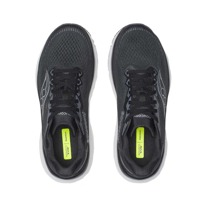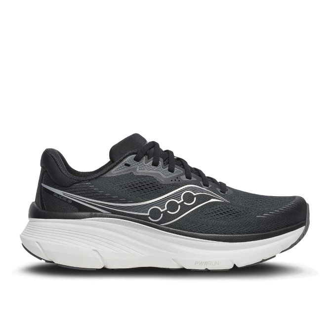 De Guide 19 heeft een PWRRUN-foam middenzool die een zachte, veerkrachtige demping biedt bij iedere landing, waardoor vermoeidheid wordt verminderd en langere runs comfortabeler aanvoelen. In combinatie met CenterPath-technologie helpt de bredere platformbasis je voet door de juiste loopbeweging te begeleiden en subtiel stabiliteit te bieden gedurende de hele afwikkeling.
