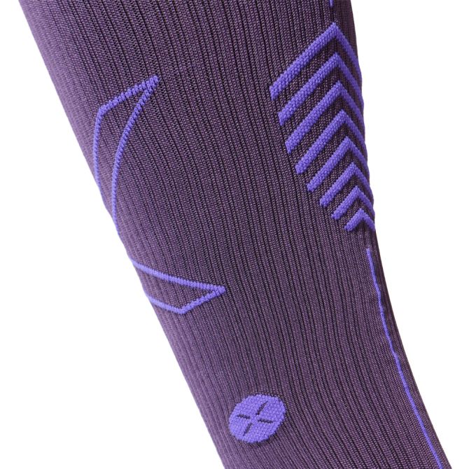 Geavanceerde degressieve compressie oefent nauwkeurige druk uit op belangrijke punten van de benen en voeten om de bloedsomloop te bevorderen. De compressie is sterk bij de enkels en wordt geleidelijk minder sterk. Hierdoor kan het bloed vrij stromen in plaats van zich op te hopen. Verbetert de bloedsomloop om zuurstofrijk bloed naar de spieren te brengen, waardoor je meer kan geven en verder kunt gaan. Ondersteunt de spieren en minimaliseert trillingen om vermoeidheid, shin splints en kuitkramp te verminderen. Bevordert snellere verwijdering van melkzuur en vermindert zwelling, zodat je sneller herstelt en harder kunt trainen. Biedt gerichte spierondersteuning, vermindert overbelasting en verkleint het risico op blessures.