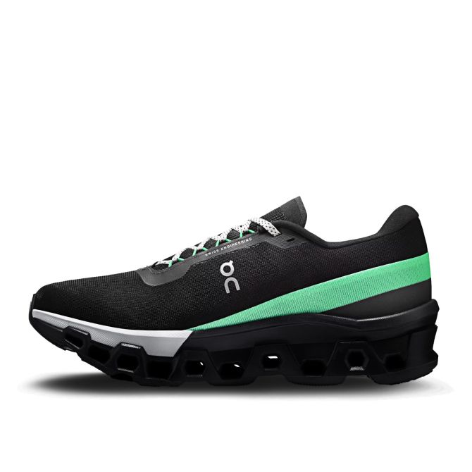 Helion™ Superfoam in de tussenzool zorgt voor lichtgewicht demping en responsiviteit. Om de druk en impact van de landing optimaal te verdelen wordt er gebruik gemaakt van Max CloudTec®-technologie. De grootste Cloudtec elementen die we ooit zagen in de schoenen van On. De Cloudmonster 2 heeft een rocker vorm, voor een natuurlijke afrol richting de voorvoet en dit geheel wordt gecompleteerd door een plastic Speedboard®. Deze lichte, rollende constructie afgemaakt met de plaat geven hem de nodige snelheid.