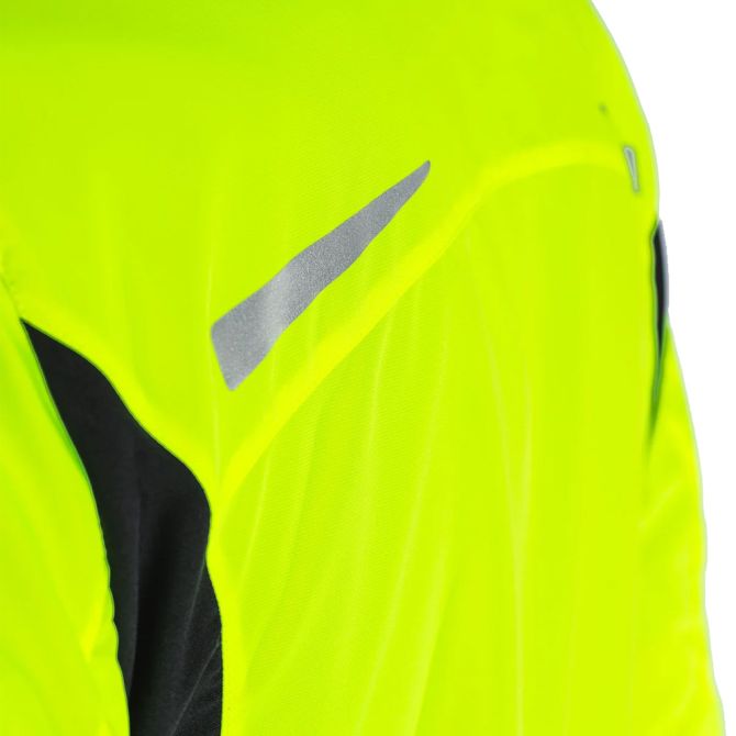 - Reflecterende delen aan de voor- en achterzijde van de schouders en aan de rugzijde