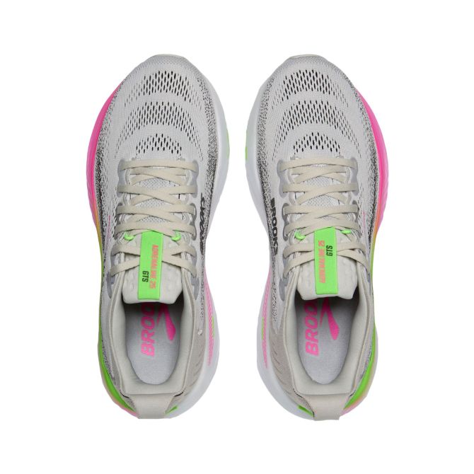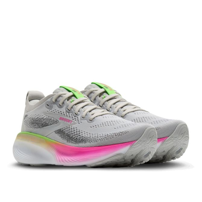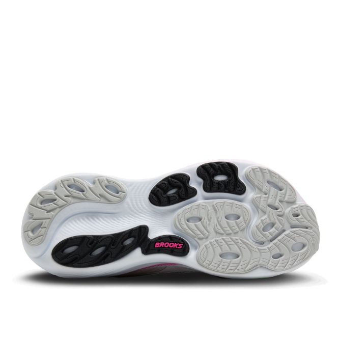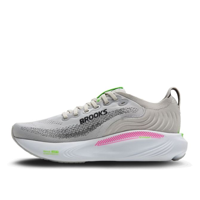 Het bovenwerk bestaat uit ademend engineered mesh / AirMesh, dat zorgt voor ventilatie en je voeten koel houdt, ook bij intensief gebruik. Tegelijkertijd omsluit het het voetoppervlak op een comfortabele, ondersteunde manier. Brooks maakte daarnaast gebruik van gerecyclede materialen, zodat duurzaamheid en comfort gecombineerd worden. De pasvorm is iets ruimer in de voorvoet vergeleken met voorgaande versies, wat extra comfort geeft, zeker bij bredere of wat volumineuzere voeten.
