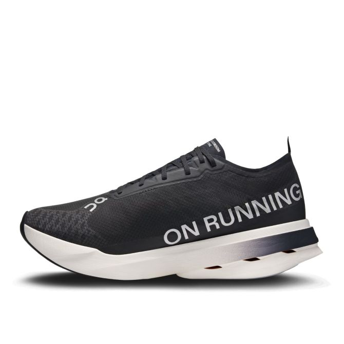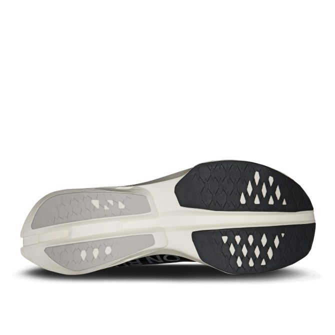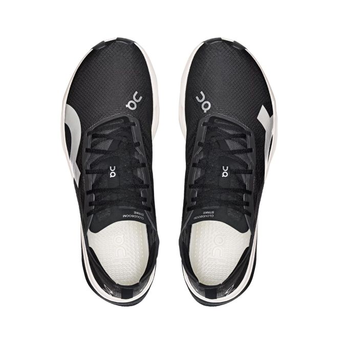 De middenzool van de Cloudboom Strike is opgebouwd uit extreem zacht Helion™ HyperFoam gemaakt van Pebax® foam. On´s unieke CloudTec®-technologie vinden we in deze schoen terug door platte minimalistische clouds. Ze leveren hun bijdrage aan een krachtige schokabsorptie en afzet. Balans en hoge snelheid komen uit het lepelvormige carbon Speedboard® die over de hele lengte van de middenzool te vinden is. Een opvallende inlay met veel extra demping in de voorvoet geeft optimaal comfort aan hoge tempo´s op de voorvoet.